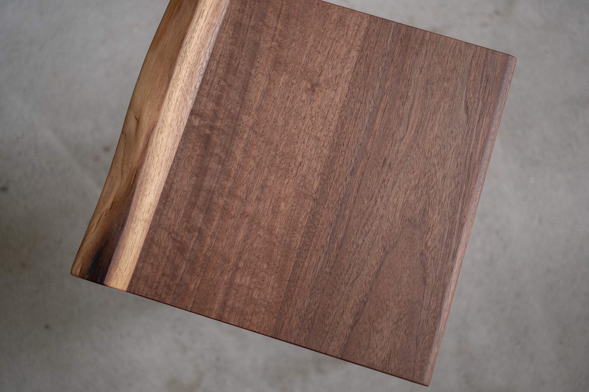 ウォールナットの濃暗褐色と、立ち上がったミミのシラタ部分の白い色とのコントラストもMiMiスツールの見どころ。芯材から外側シラタへと、大きな丸太で見られるような色合いの変化を、小さな1つのスツールの中で楽しんで頂けます。
