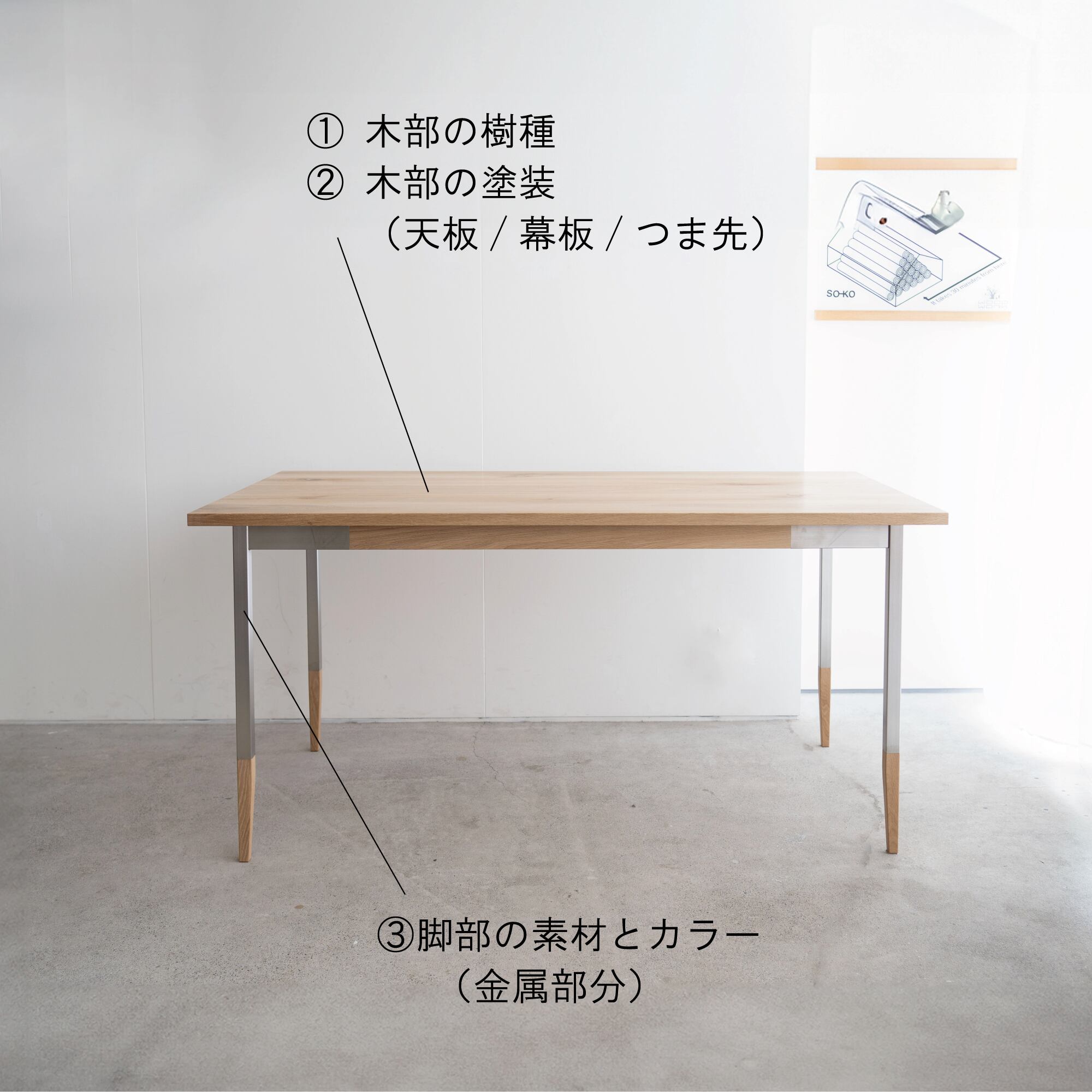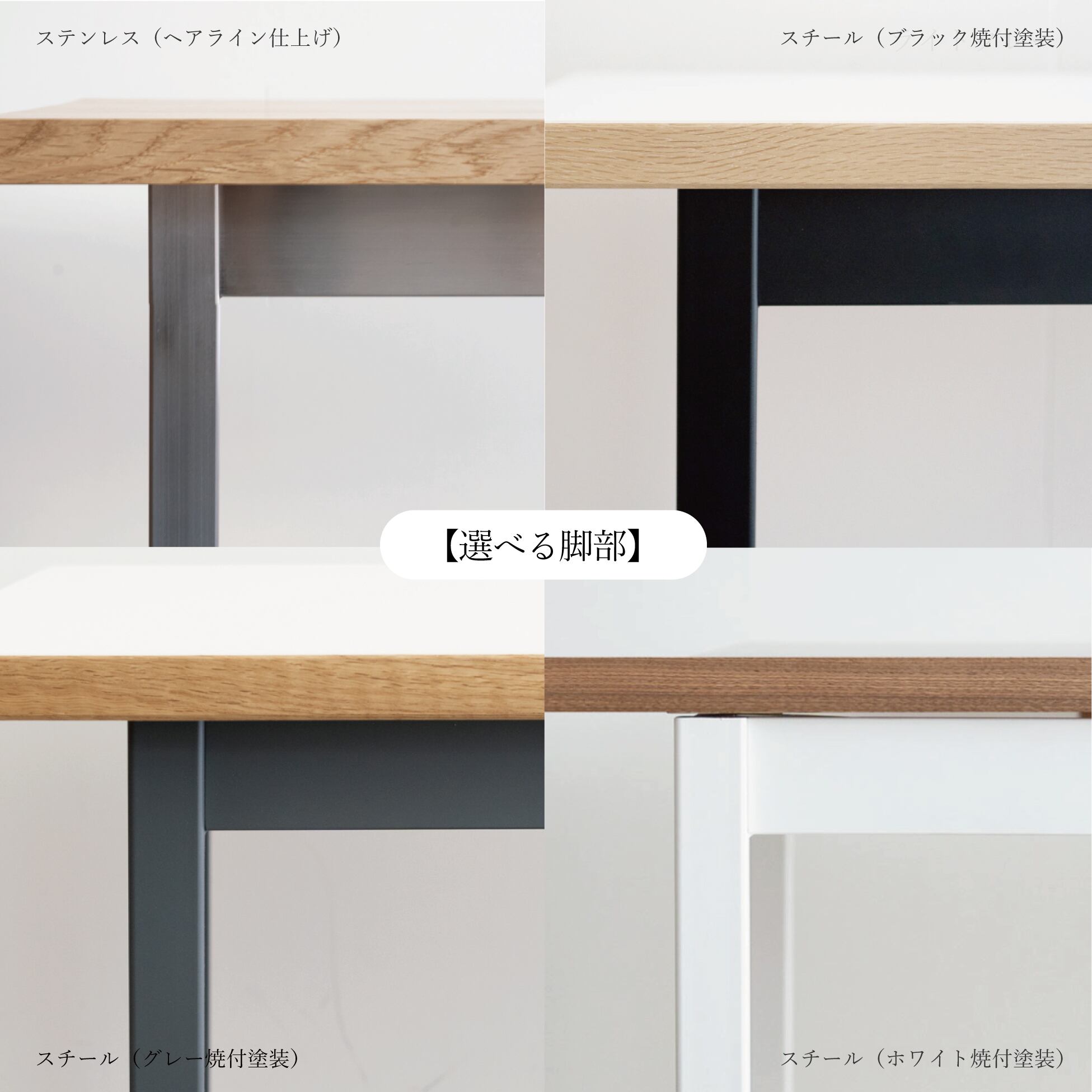無垢天板と脚部の種類の組み合わせを、自由に選んでいただけます。