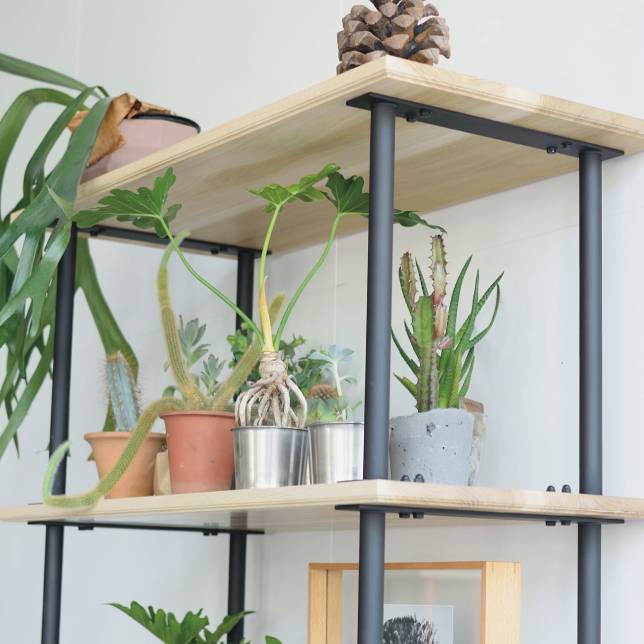 BUILD RACK(ビルドラック)は柱と床をイメージして、2本の支柱と棚板を挟んで、固定することで構造として成り立つ棚となっています。BUILD RACKにはキャスターを付けることも可能です。強度もありつつ抜け感がある、室内空間を自由に移動しやすく汎用性の高い収納家具です。