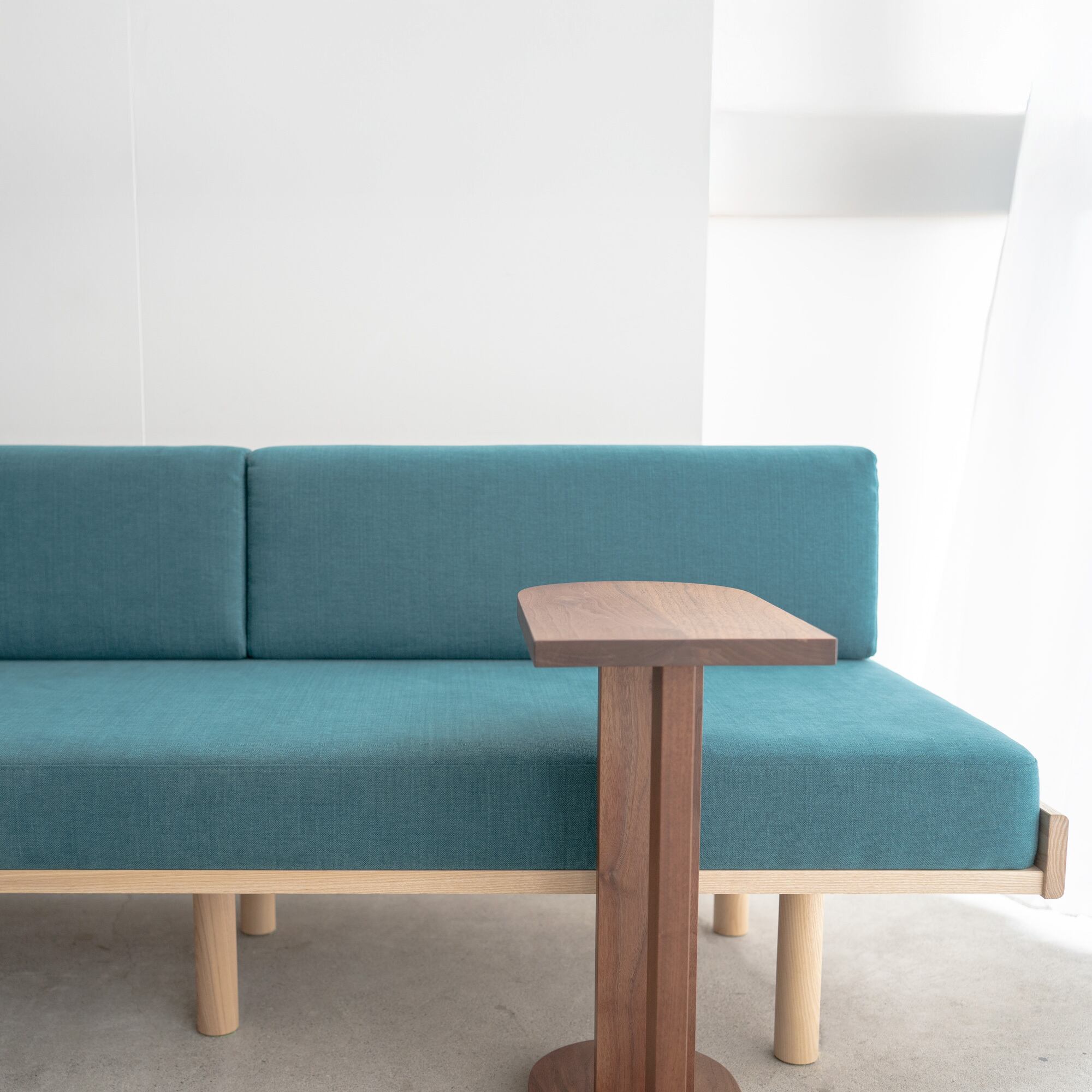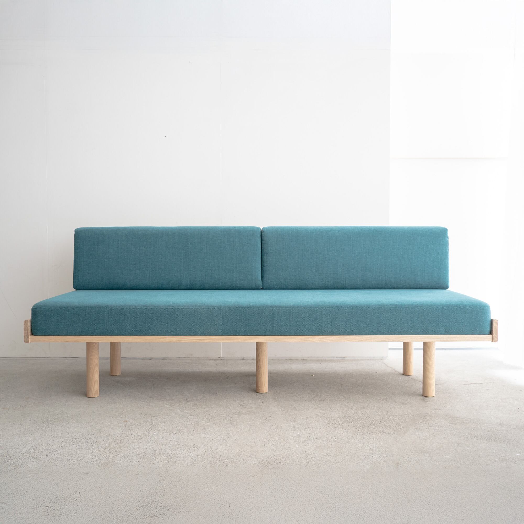日本の住まいに合うように、背もたれを少し低めにすることで圧迫感なく様々な空間に溶け込みます。見た目にも重厚すぎず、軽やかすぎない、ちょうど良い塩梅のソファを目指しました。