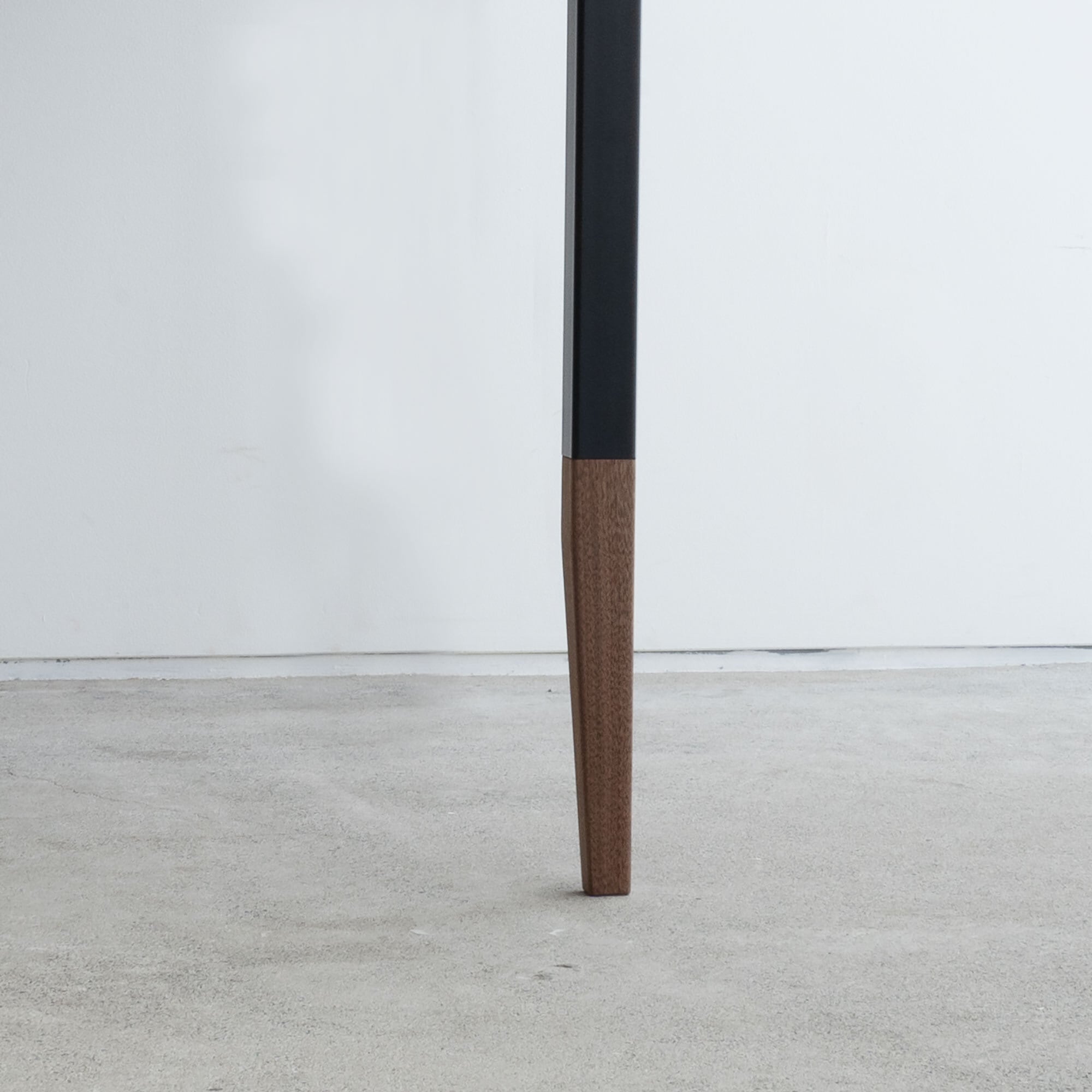 天板面がメラミン材のオルタナティブテーブルでも、木口の部分の無垢材は時間とともにより質感が増してゆきますので、樹種による経年変化の違いをお楽しみいただけます。