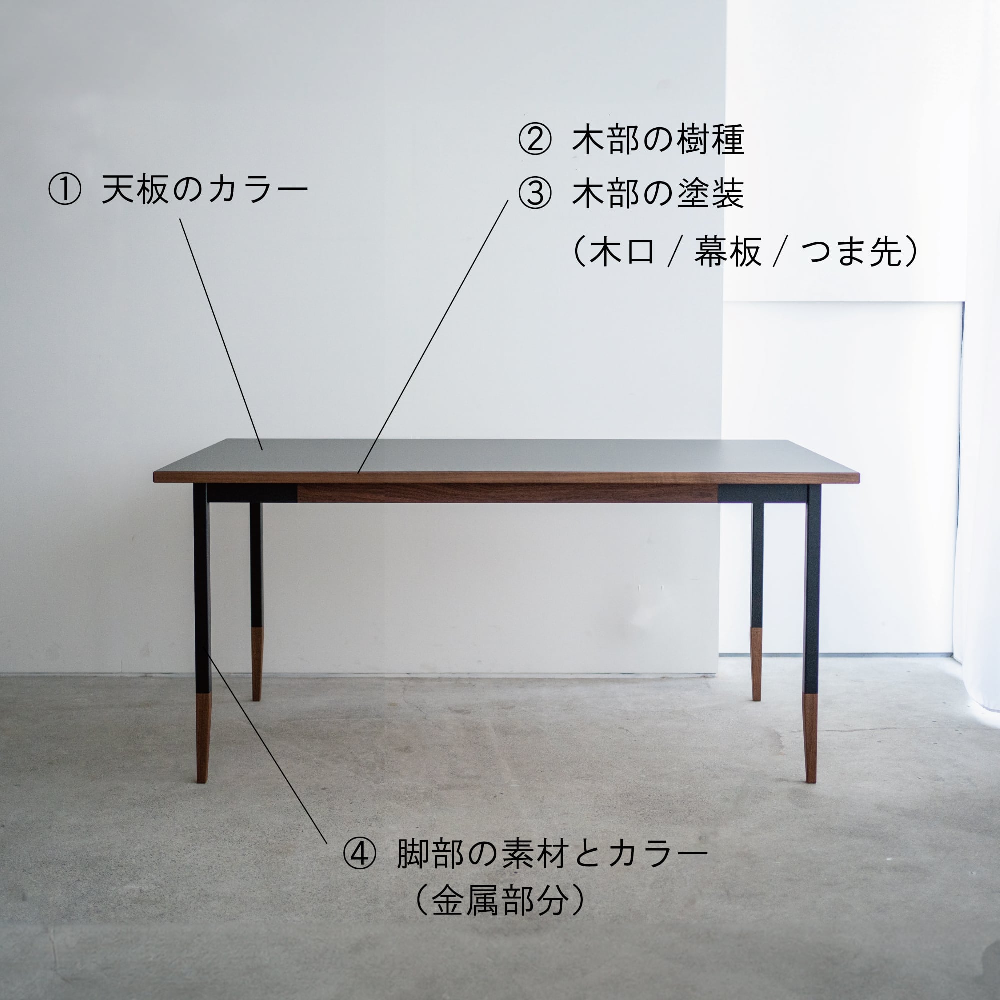様々なご要望にお応えできるように、オルタナティブテーブルでは、天板、脚部、塗装、を自由に組み合わせて頂くことで、多様なバリエーションの中からお客様のご要望にぴったりな一台をお選びいただけるように考えました。