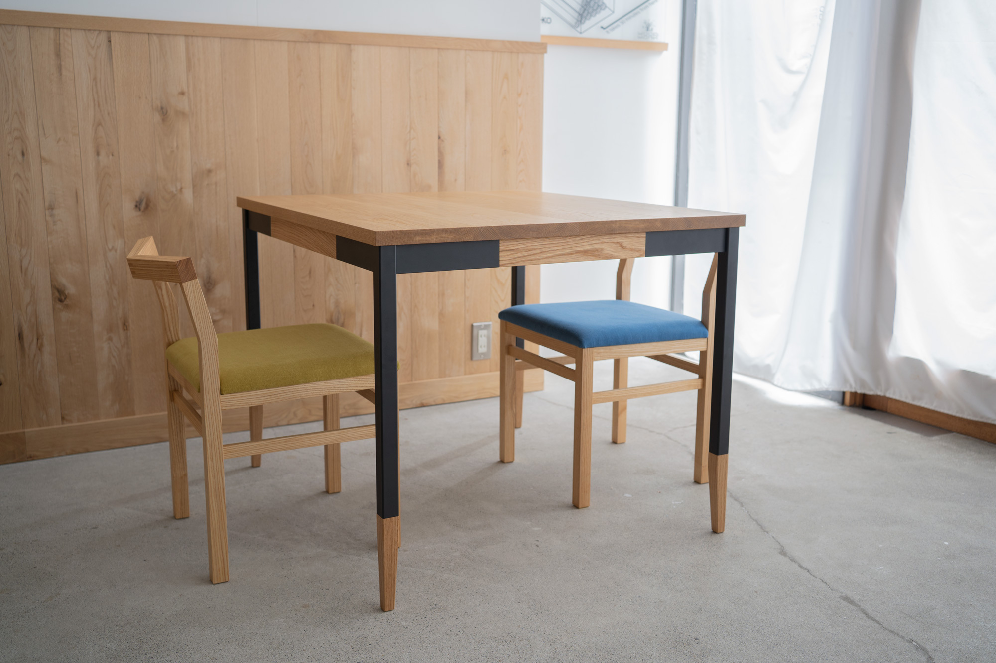 天板面がメラミン材のオルタナティブテーブルでも、木口の部分の無垢材は時間とともにより質感が増してゆきますので、樹種による経年変化の違いをお楽しみいただけます。