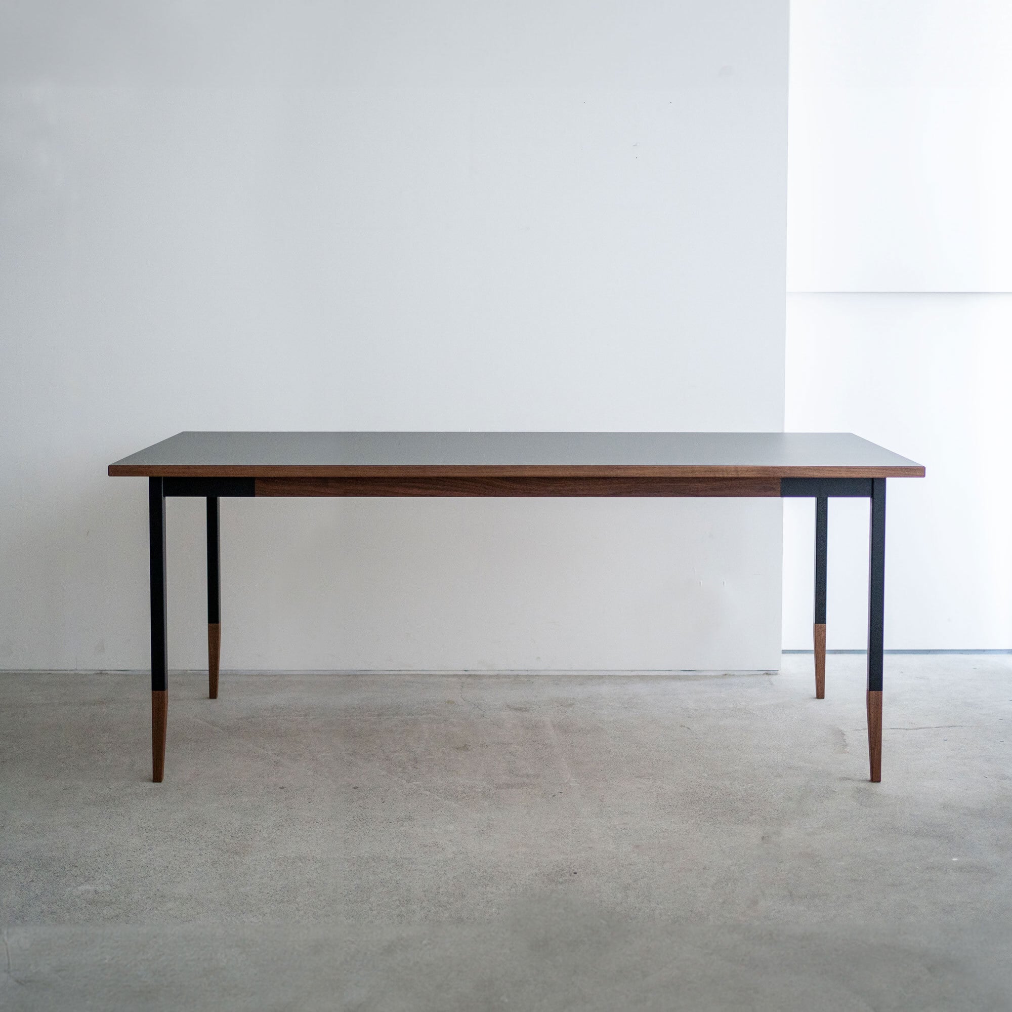 ご納品させていただいた、グレーメラミン天板にステンレス脚部、ウォールナット材を合わせたオルタナティブテーブルです。