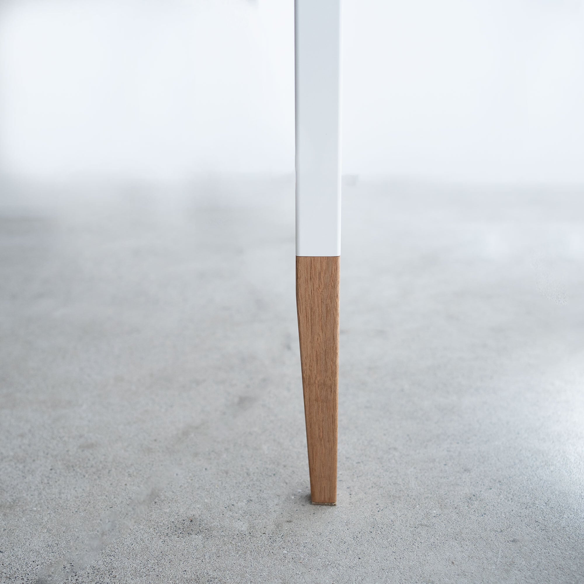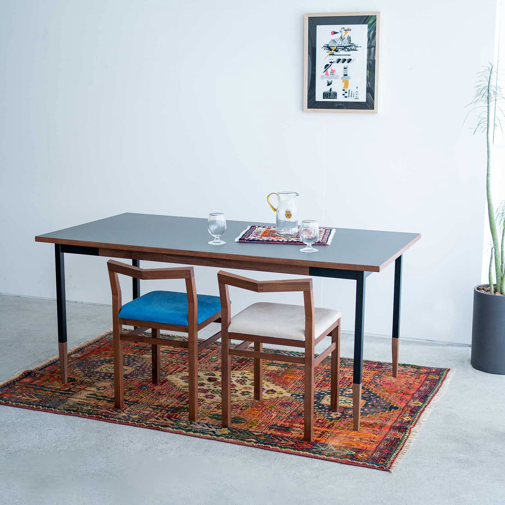 天板面がメラミン材のオルタナティブテーブルでも、木口の部分の無垢材は時間とともにより質感が増してゆきますので、樹種による経年変化の違いをお楽しみいただけます。