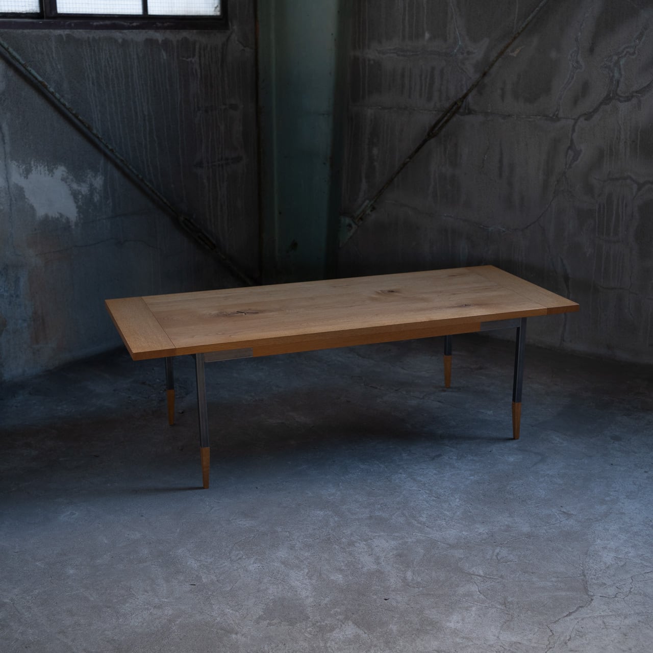 厚みをおさえた天板に細い金属の脚を合わせた『ALTERNATIVE TABLE』のローテーブルです。