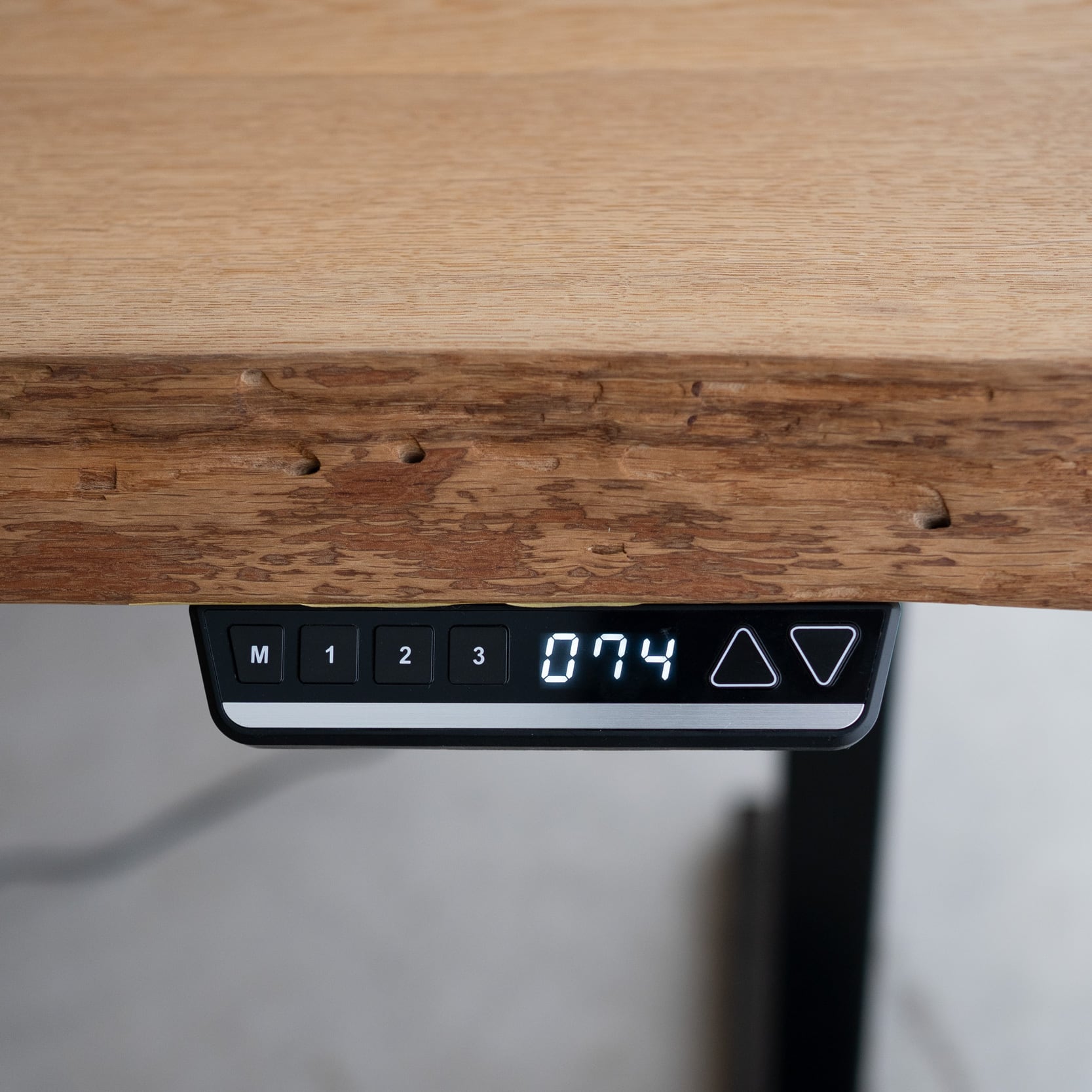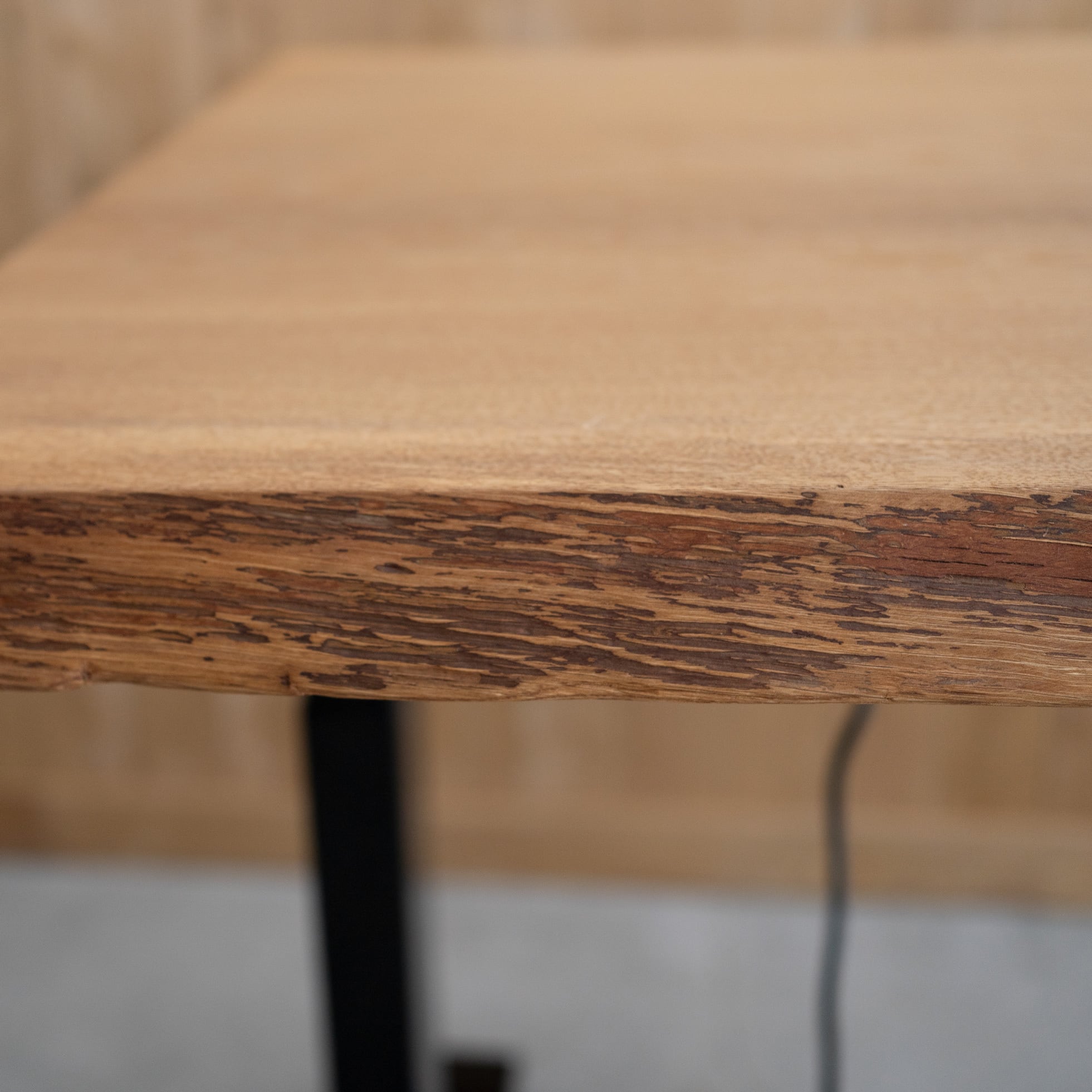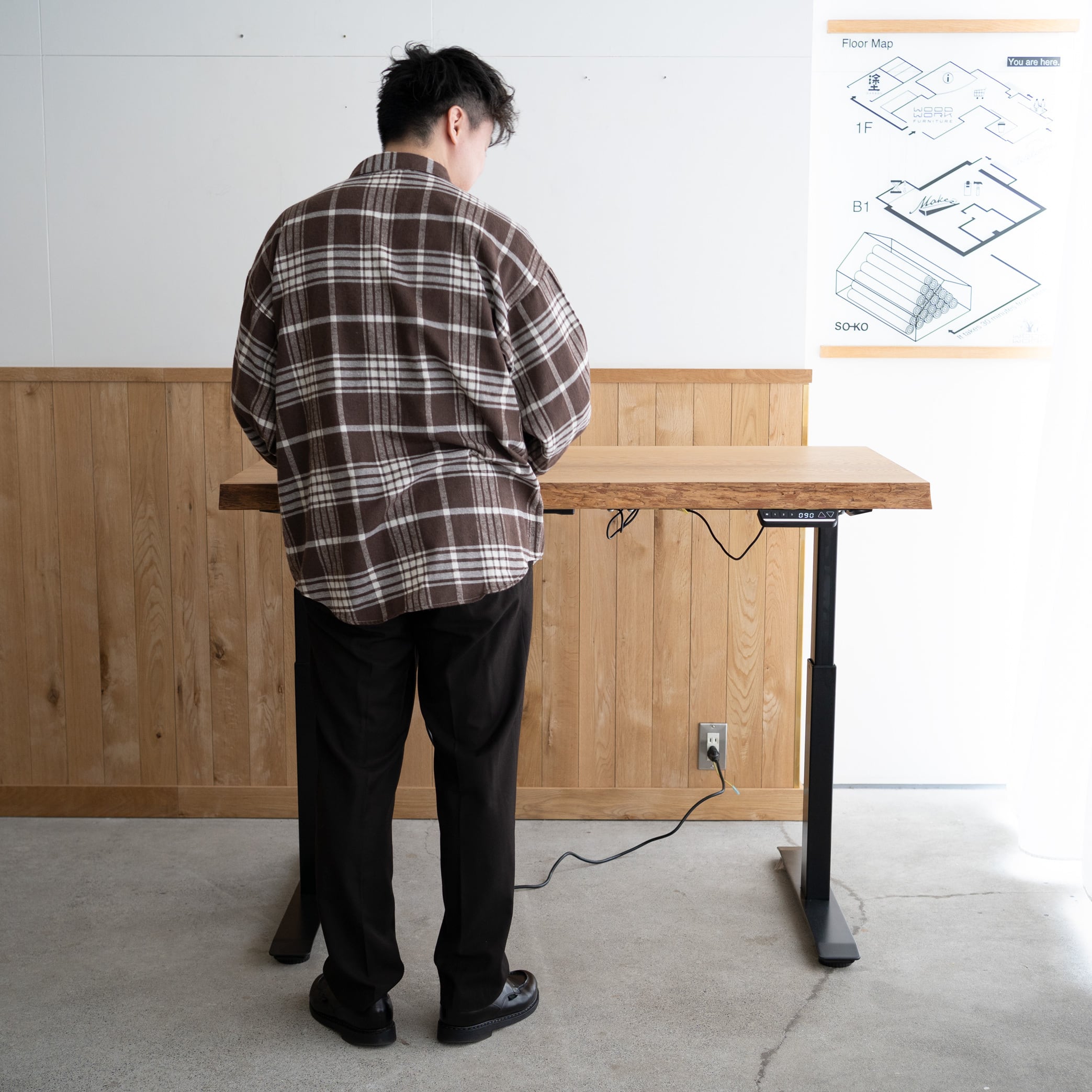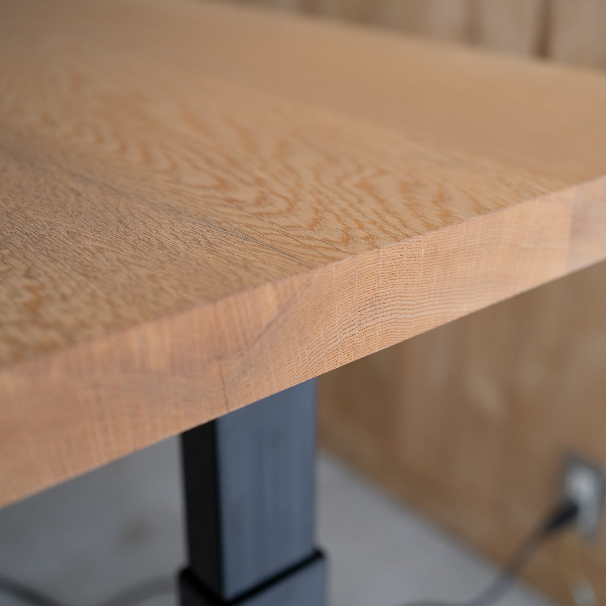 三枚接ぎのナラ材天板に昇降デスク用脚部を合わせたデスクです。
