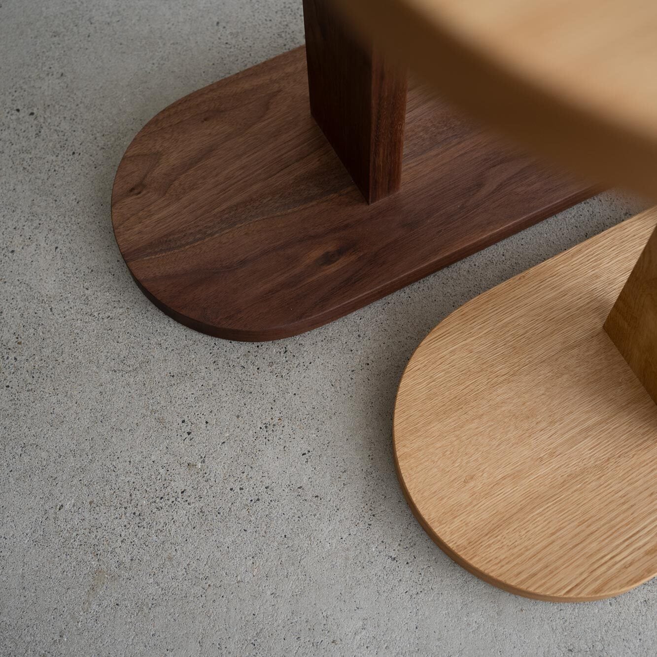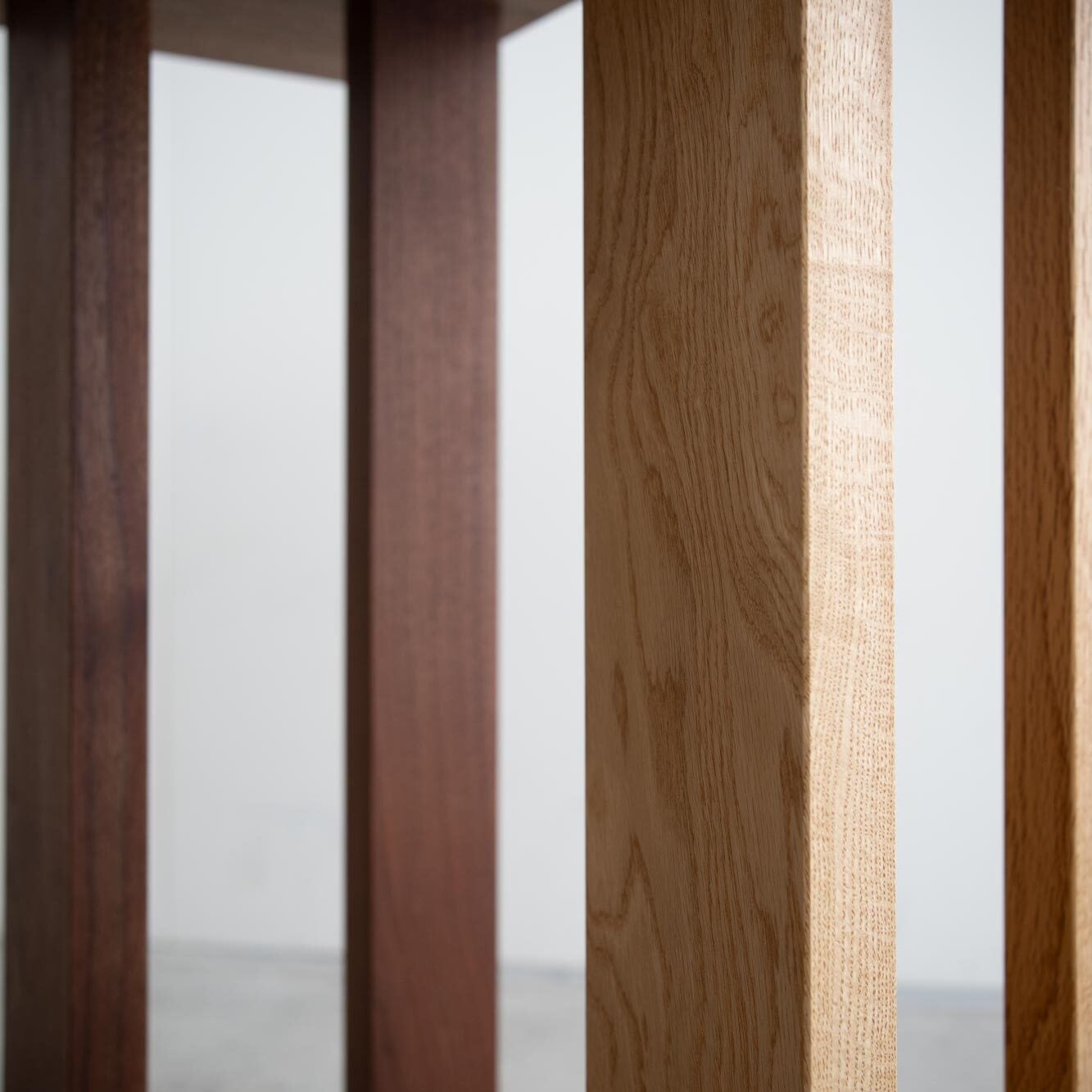 ウォールナット:紫がかった濃暗褐色と程よい硬さが特徴。チークやマホガニーと並ぶ3大銘木のひとつ。食用のクルミがとれる樹種としても知られる。経年変化により暗褐色から温かみのある茶色に変化する。