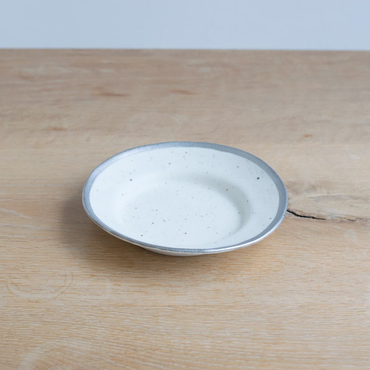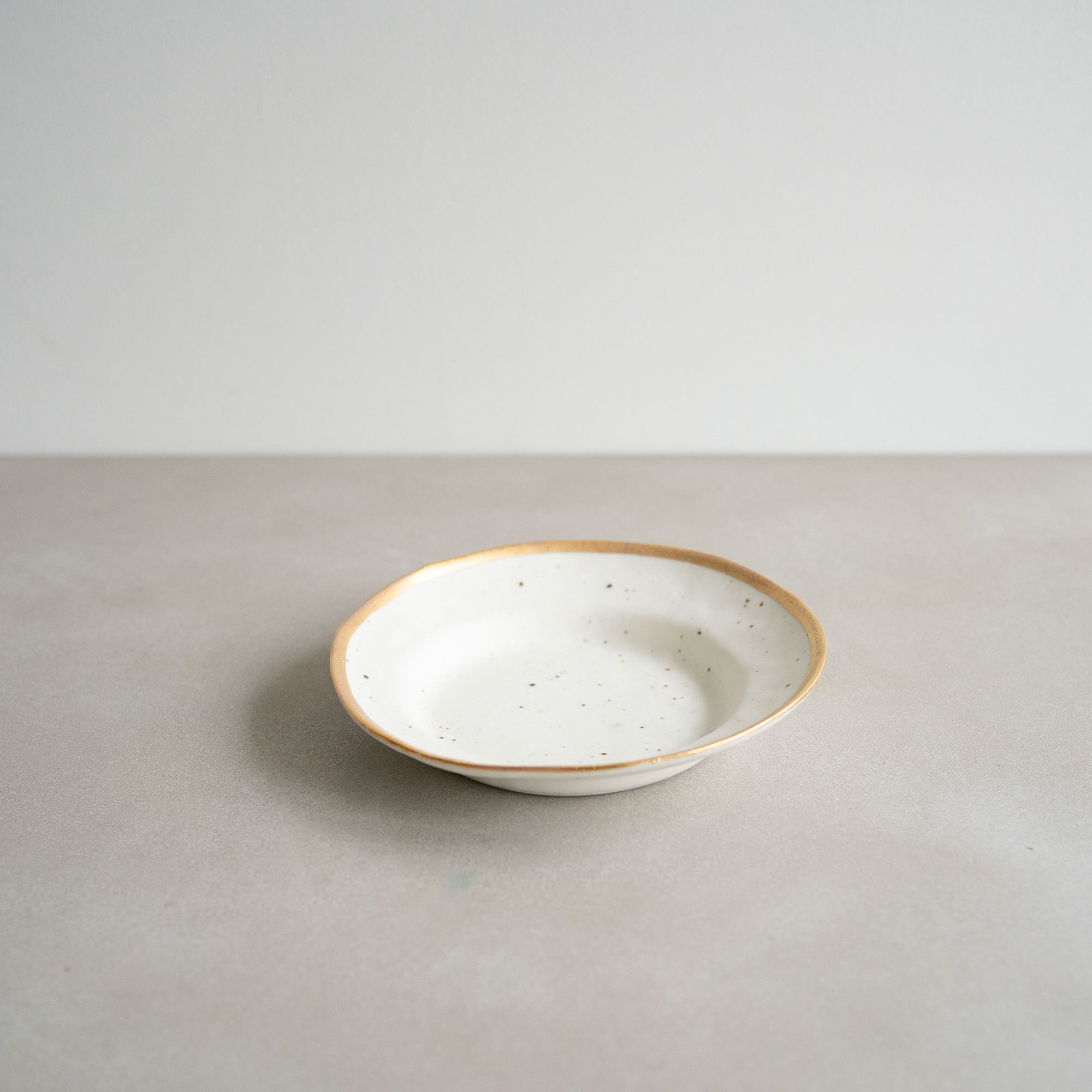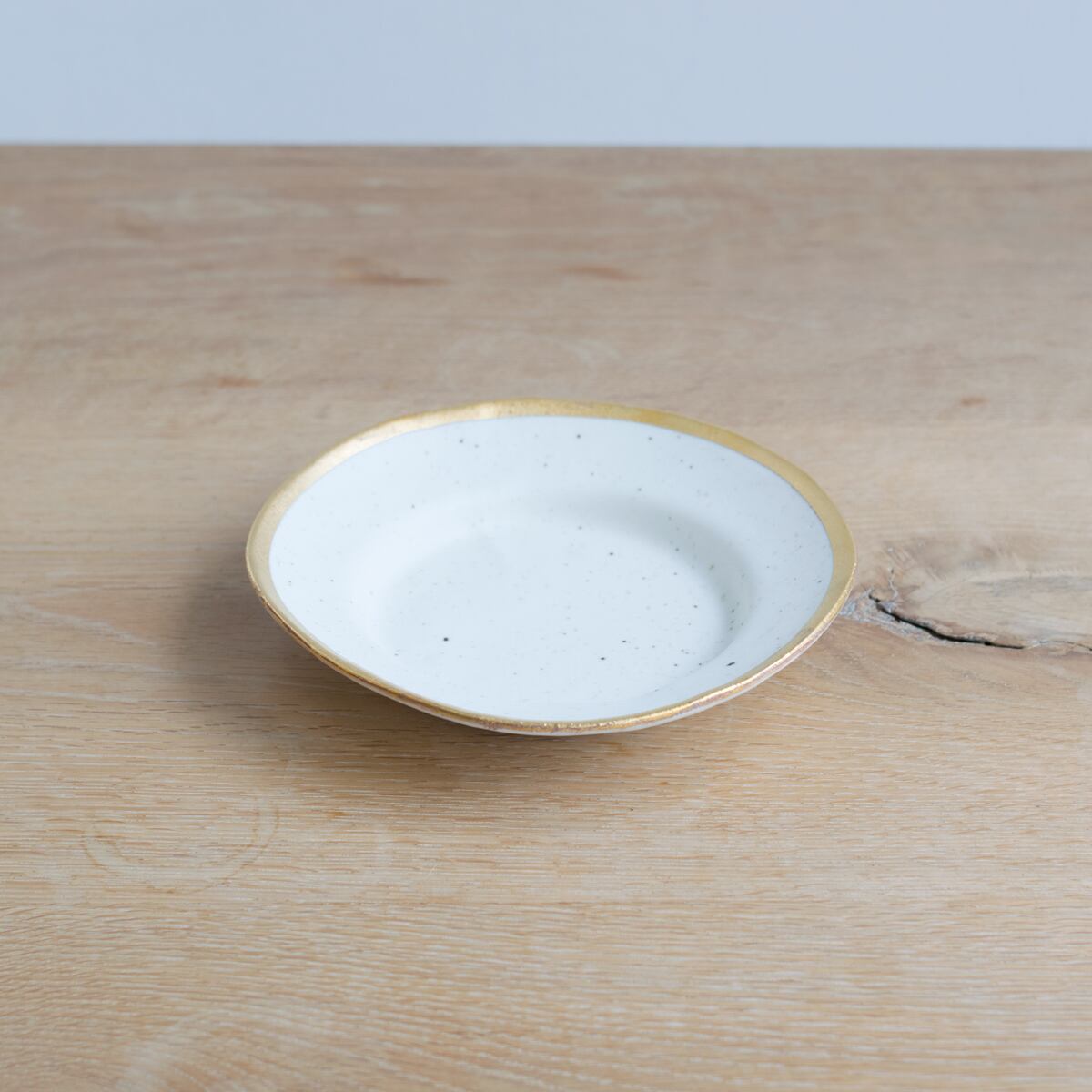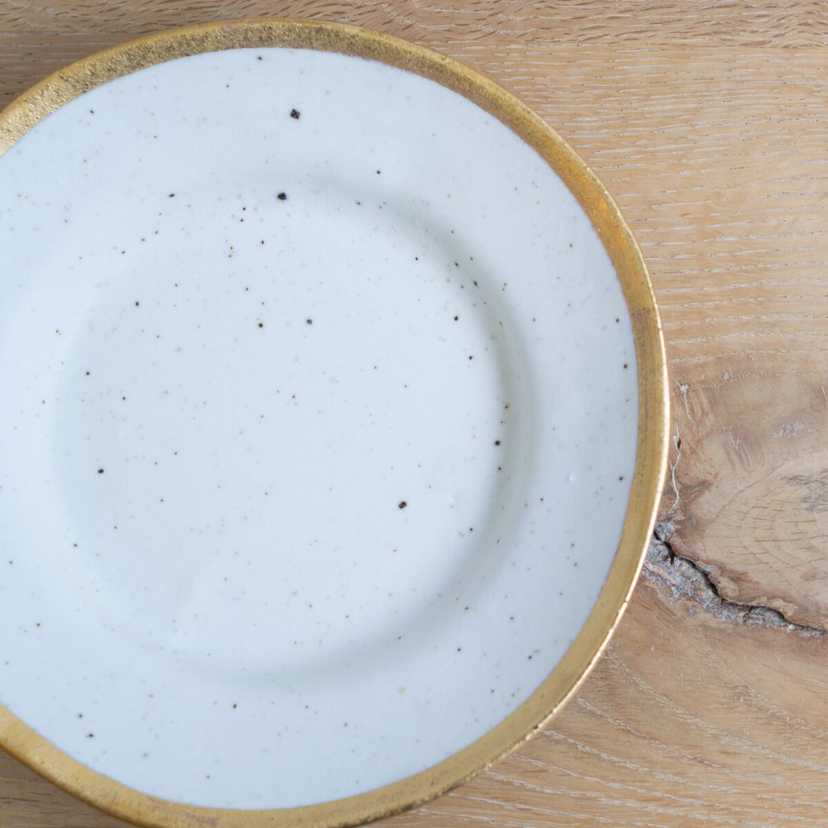 ふちに潔く施されたゴールドとプラチナのラインと、石膏型から外すときに生まれる緩やかな曲線の妙に惹かれて、使ってみたいと思っていました。一見すると合わせるものが難しそうかなとも思うのですが、実は何にでも合う懐の深さがあります。