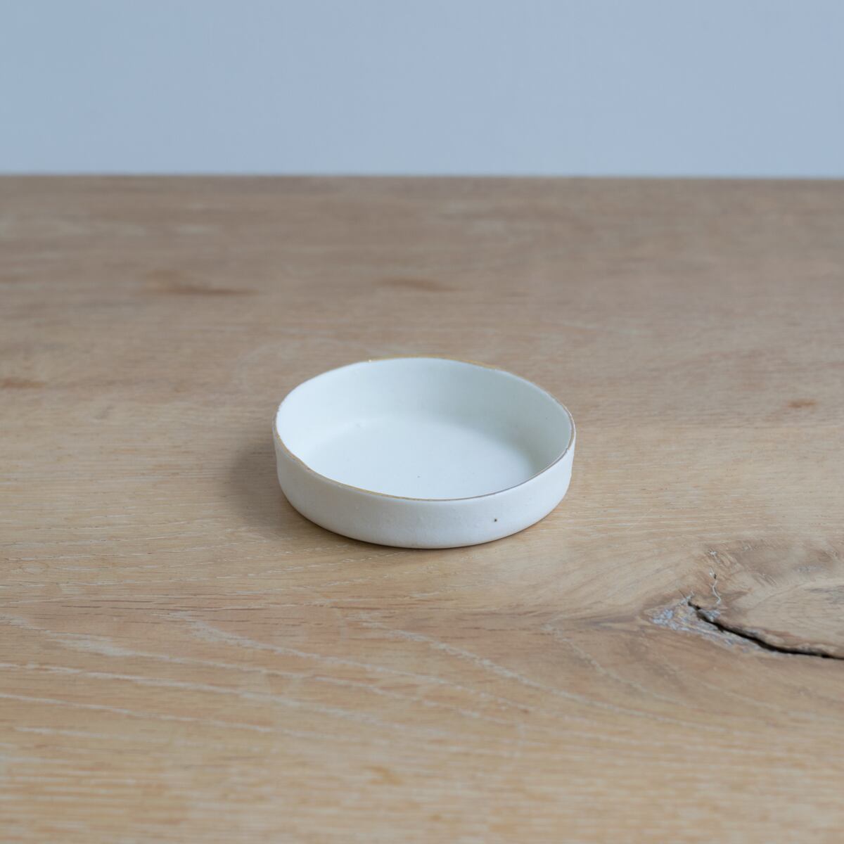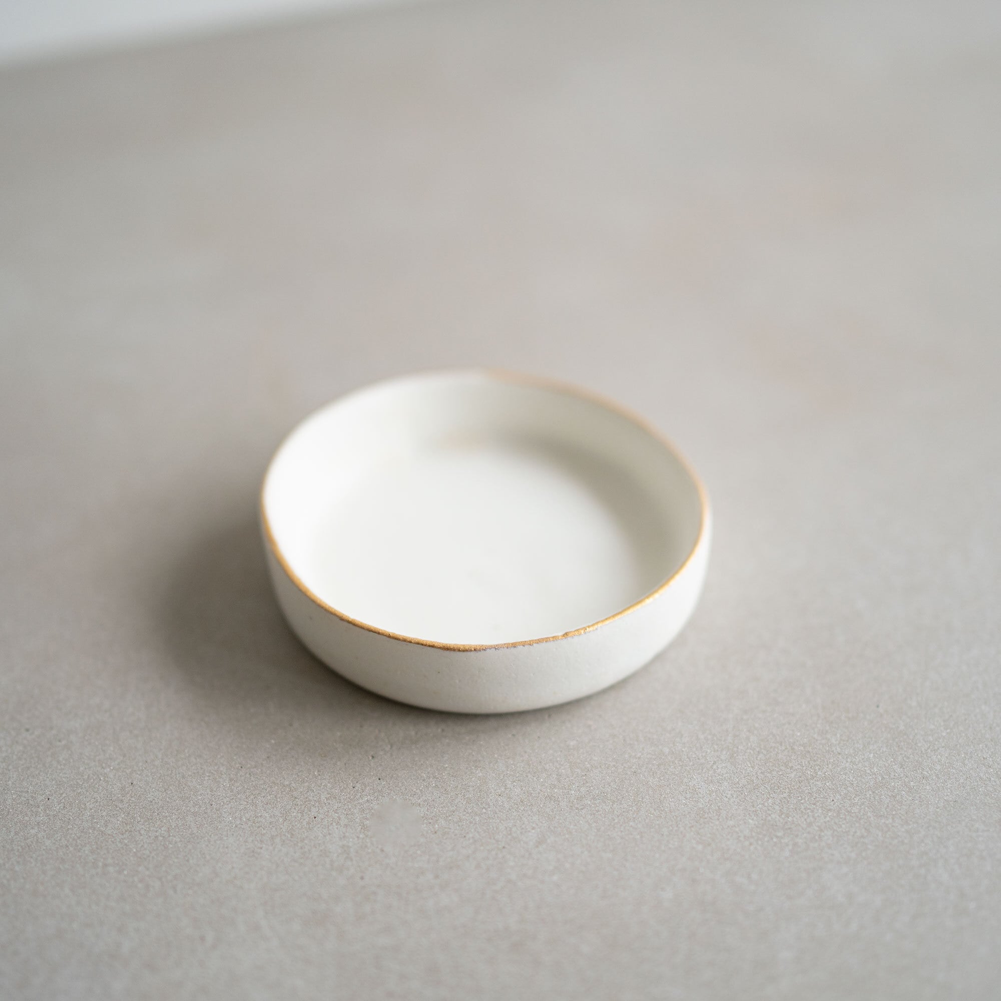 ふちに潔く施されたゴールドとプラチナのラインと、石膏型から外すときに生まれる緩やかな曲線の妙に惹かれて、使ってみたいと思っていました。一見すると合わせるものが難しそうかなとも思うのですが、実は何にでも合う懐の深さがあります。