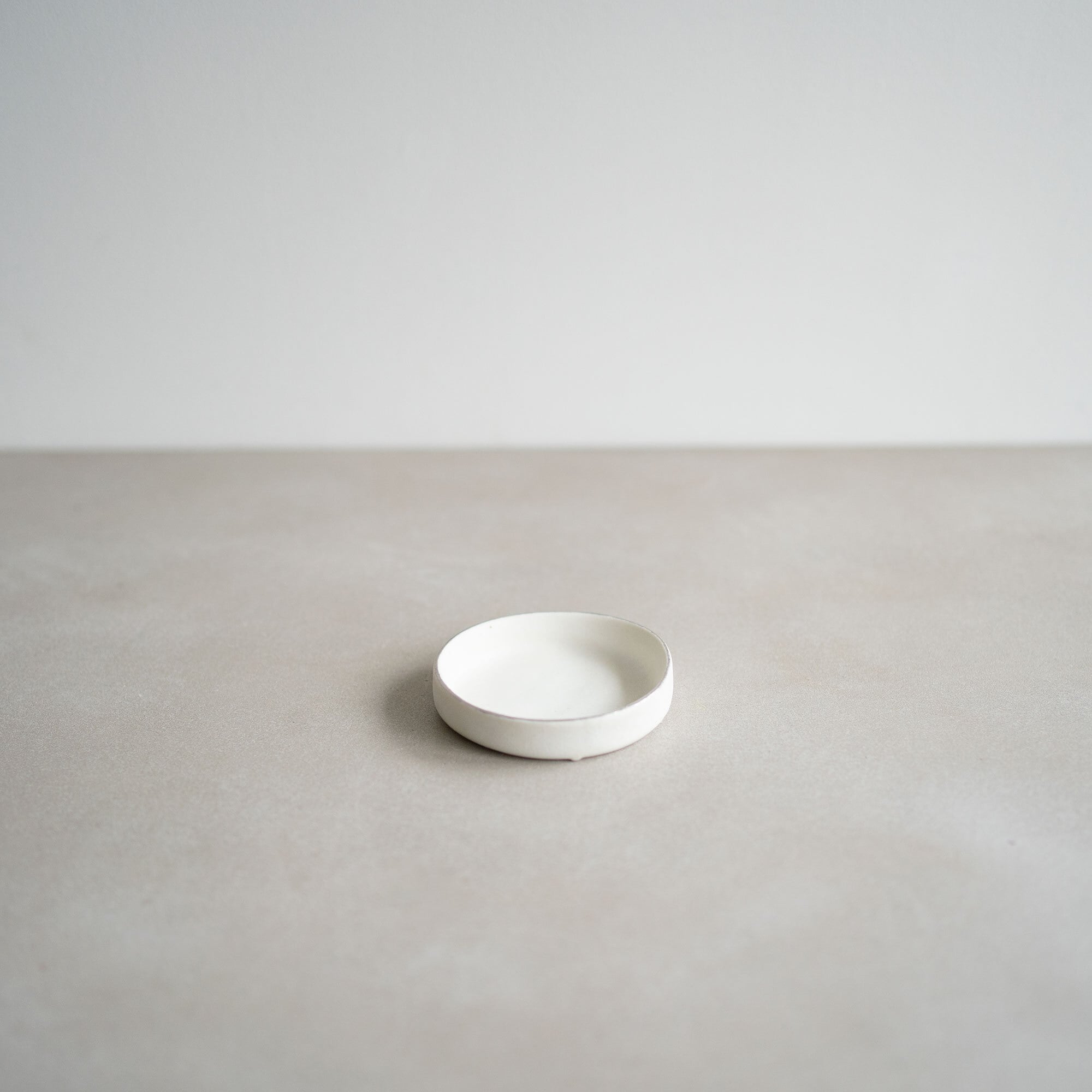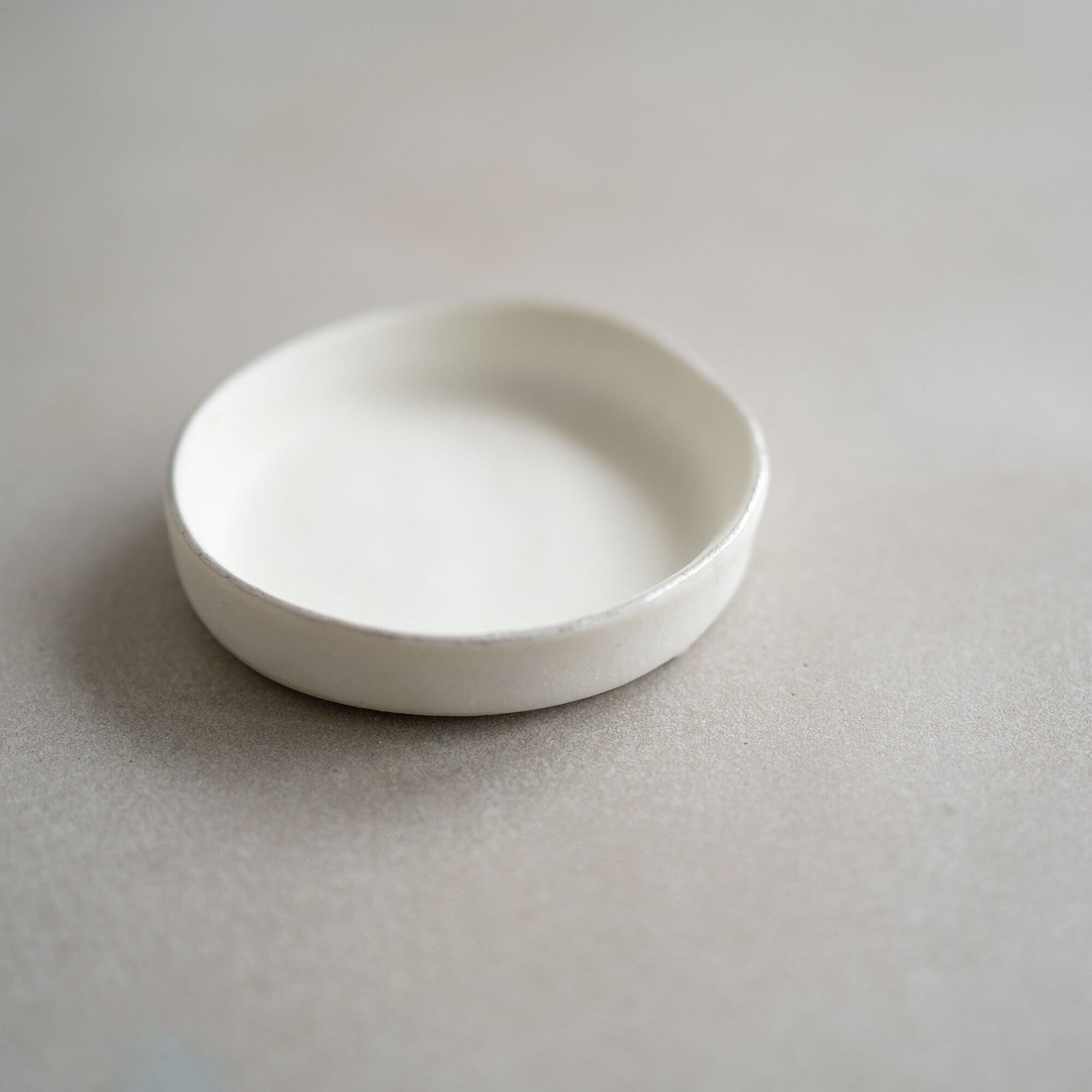 筒状の型の中に液体の土を流し込んで作るこのシリーズは、流し込む土の深さを変えることで、お皿やコップなど違ったうつわになります。土を流し込んだ後に表れる水面のかたちをそのまま残すことで、一つ一つに特別な表情が生まれます。