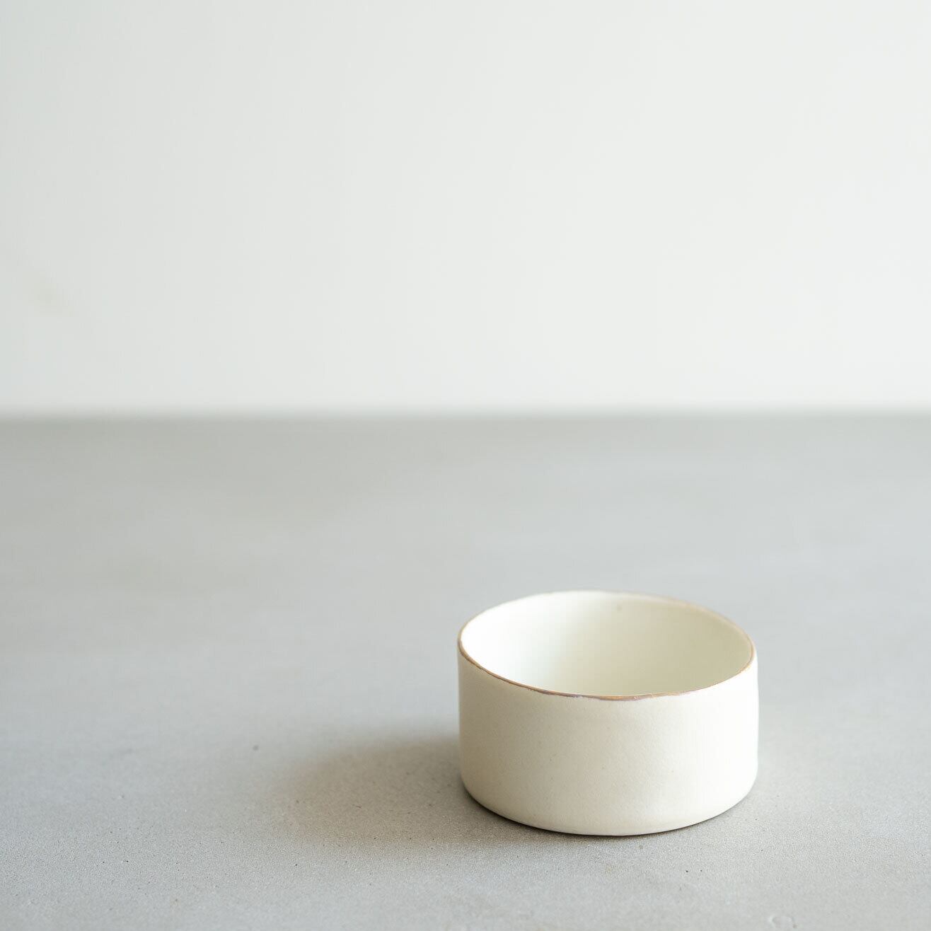 筒状の型の中に液体の土を流し込んで作るこのシリーズは、流し込む土の深さを変えることで、お皿やコップなど違ったうつわになります。土を流し込んだ後に表れる水面のかたちをそのまま残すことで、一つ一つに特別な表情が生まれます。