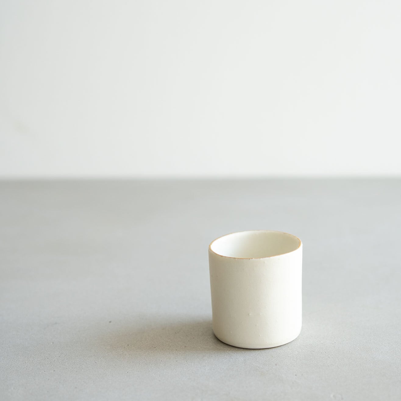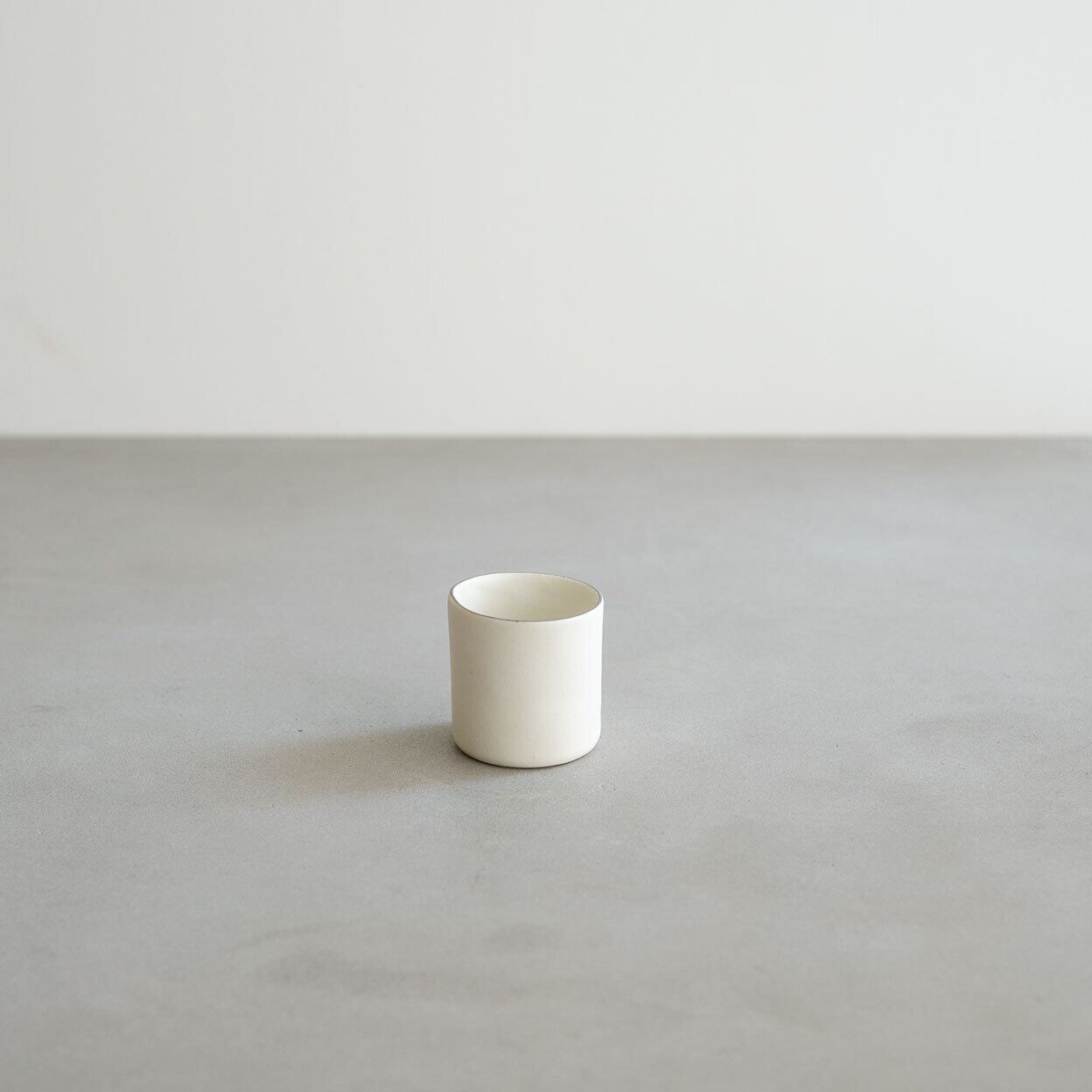 筒状の型の中に液体の土を流し込んで作るこのシリーズは、流し込む土の深さを変えることで、お皿やコップなど違ったうつわになります。土を流し込んだ後に表れる水面のかたちをそのまま残すことで、一つ一つに特別な表情が生まれます。