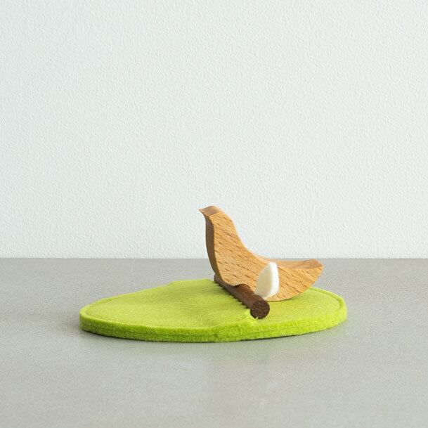 卵はフェルト製のケースになっていて、小鳥と枝を収納できます。ウグイスとホワイトの2色よりお好きな色をお選び下さい。