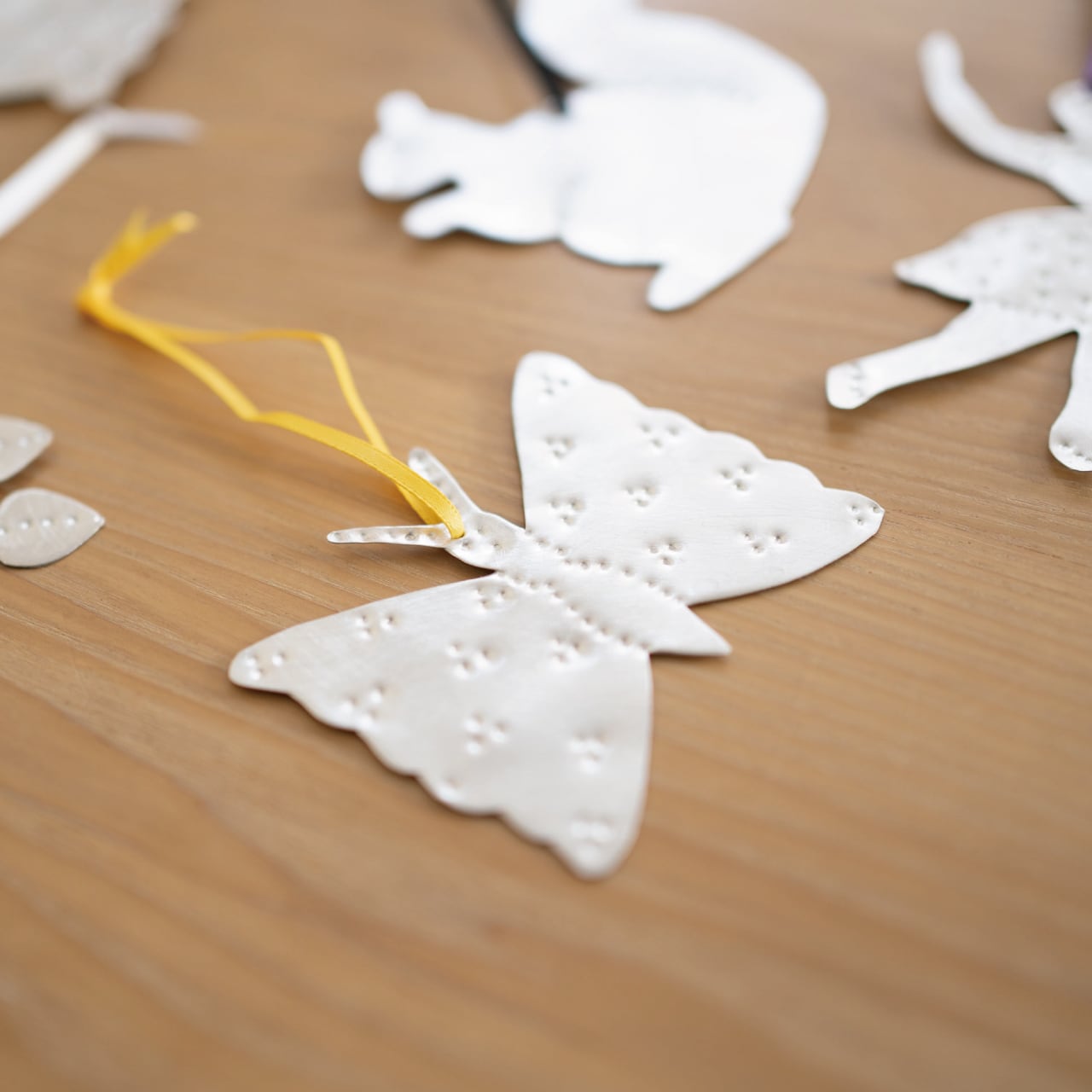 ひとつひとつ切って叩いて作られているオーナメントがクリスマスを彩ってくれます。