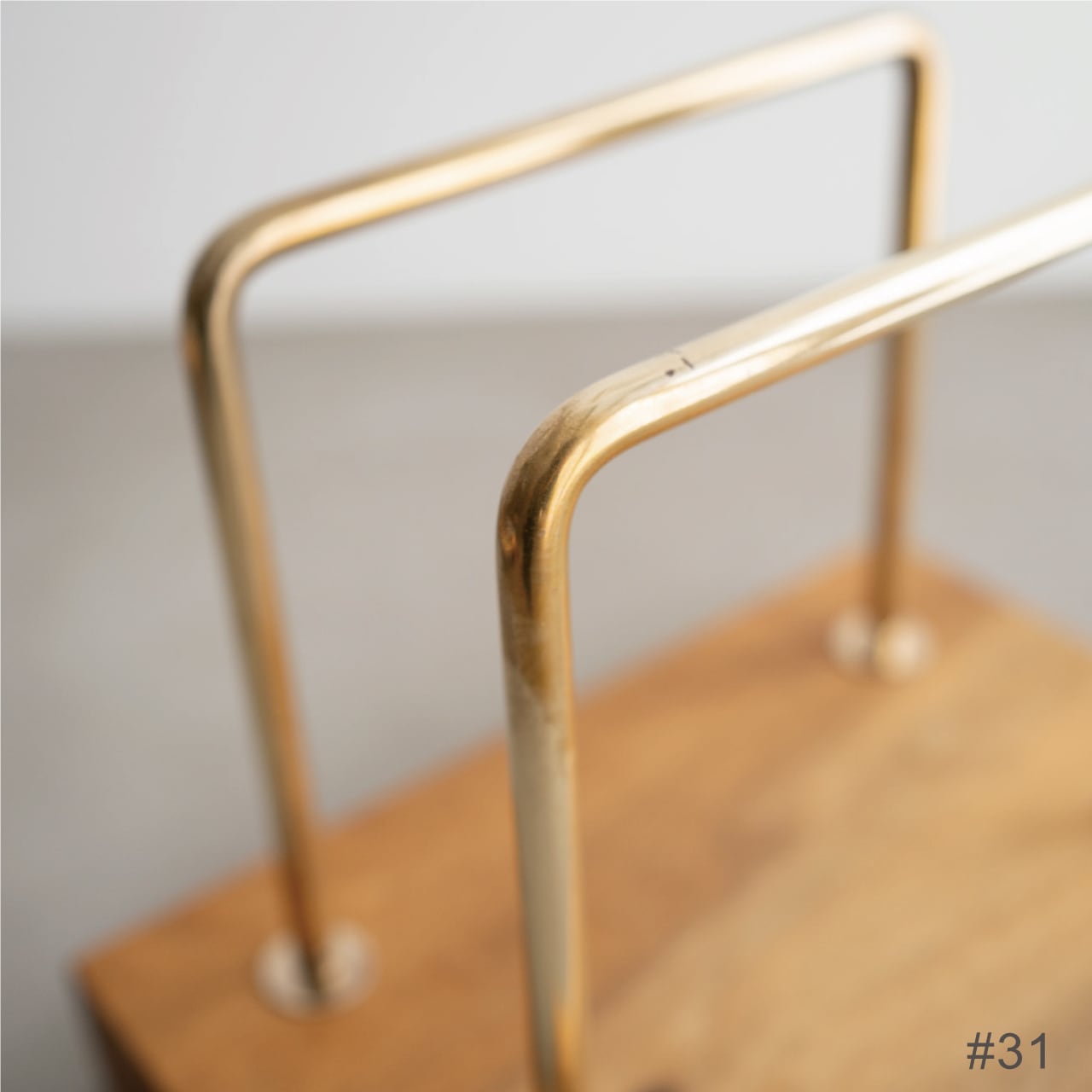 スタンド部分は真鍮製です。9mmの丸環をまげて製作していますので、丈夫でしっかりと安定した使用感を実感していただけます。真鍮の色合いが、経年変化により渋みのある金色に変化する様子もお楽しみください。