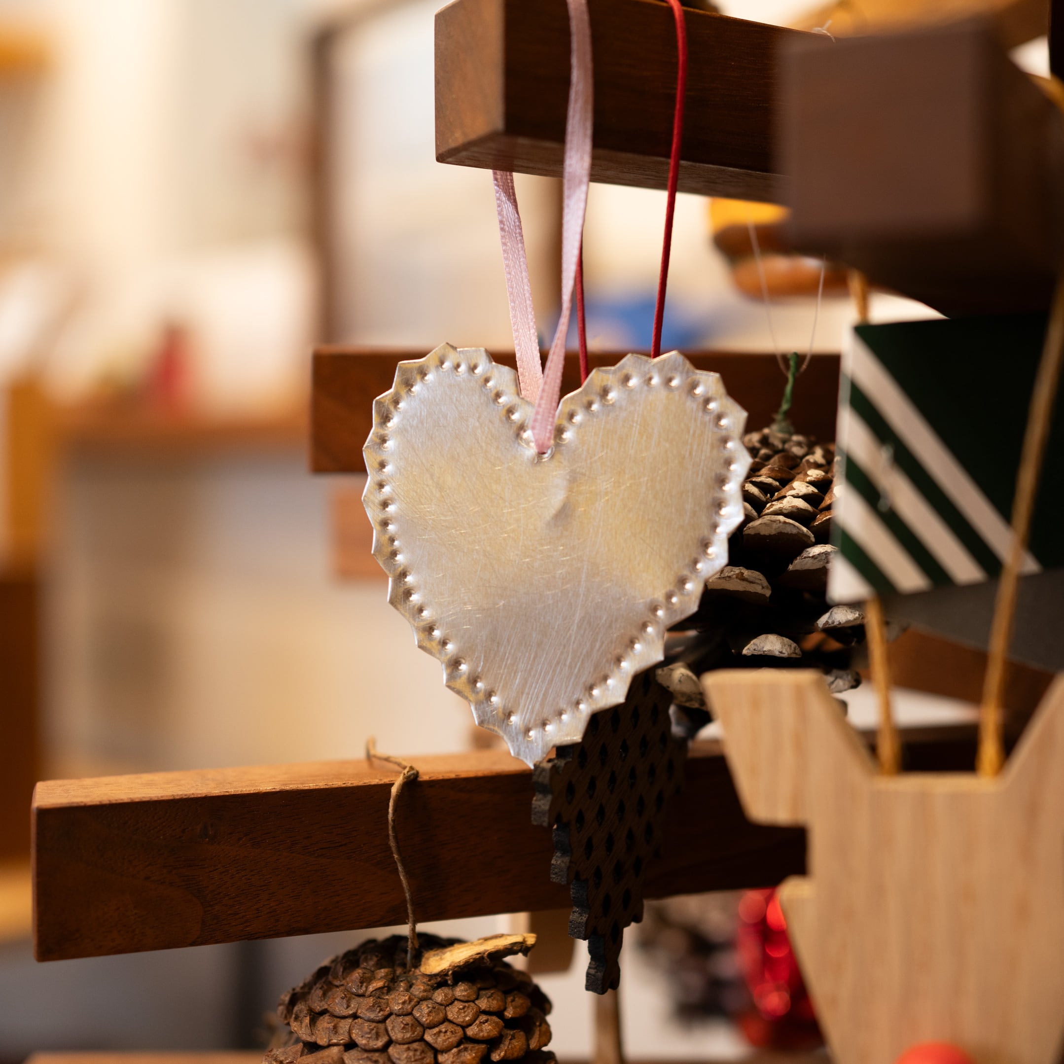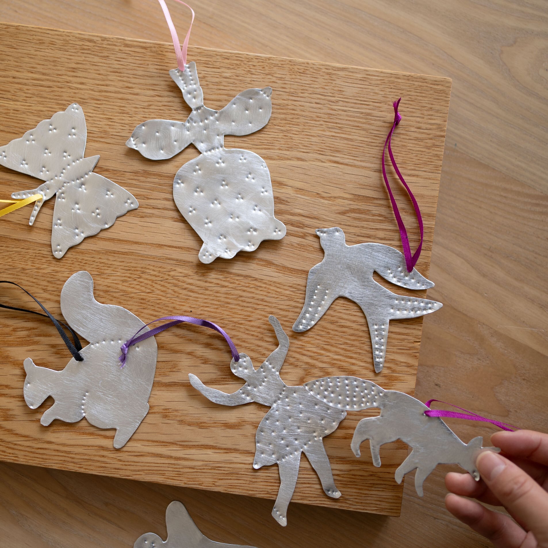 ひとつひとつ切って叩いて作られているオーナメントがクリスマスを彩ってくれます。